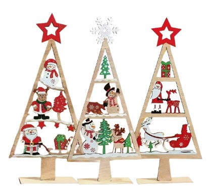 Add a touch of Christmas magic to your home with these delightful 3D Wooden Christmas Tree Decorations. Standing approximately 30 cm tall and 13.5 cm wide, each freestanding tree features beautifully layered wooden scenes bursting with festive color and detail.