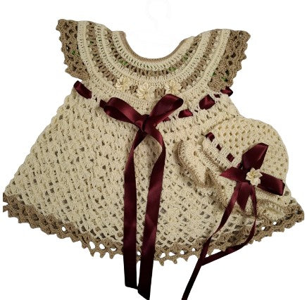 9 months up ~ Baby Girl Cream and Taupe Handmade Crochet Set (#48)