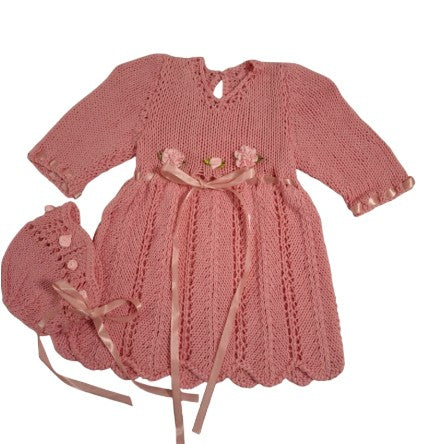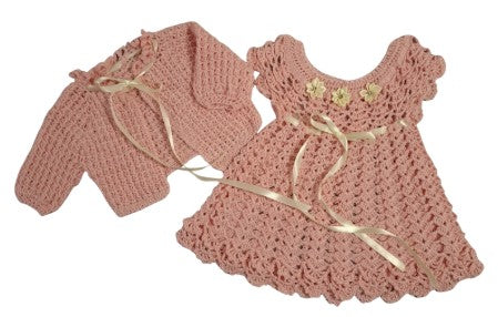9 months up ~ Baby Girl Pink Handmade Crochet Dress Set (#53)