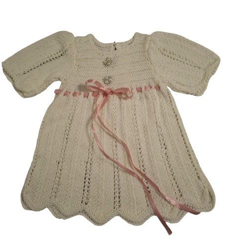 9 to 12 months ~ Baby Girl Off White Handmade Crochet Dress (#54)