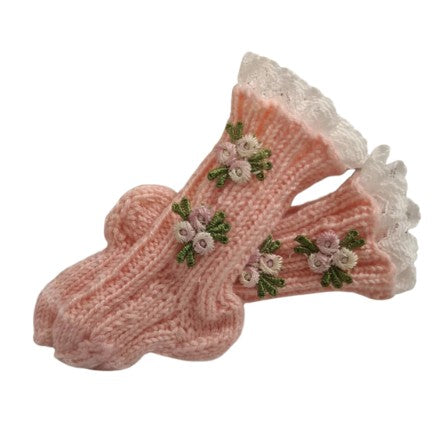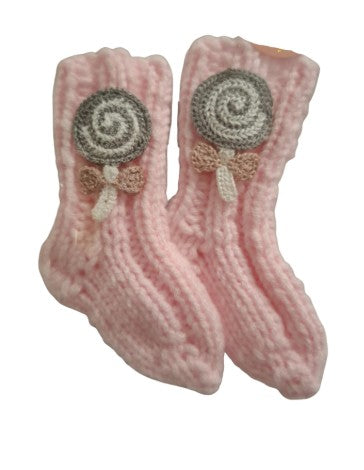 6 to 12 months - Baby Girl Pink Handmade Knitted Socks (#6)