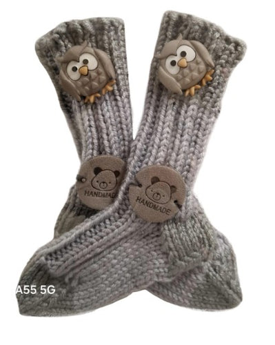 6 to 12 months - Baby Soft Grey Handmade Knitted Socks (#12)