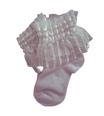 3 to 6 months - Baby Girl White Handmade Knitted Socks (#3)